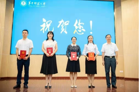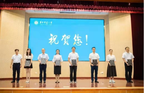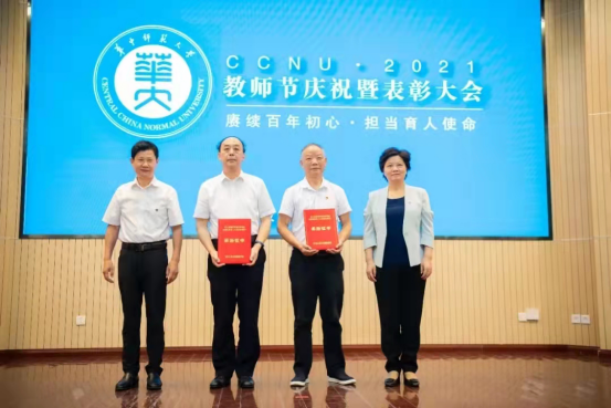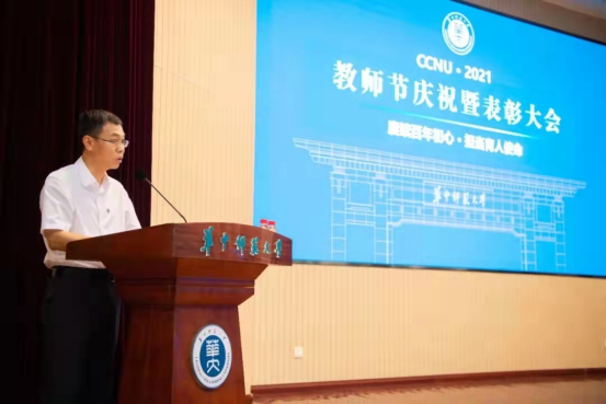 大会表彰了81名从教30年的教职员工、38名从教40年的教职员工、84名荣休教职员工,新入职教职员工代表上台为荣休教职员工献花,荣休教职员工为新入职教职员工代表赠送校徽。大会还表彰了2020年度“校长奖”获得者、高校青年教师教学竞赛获奖者、湖北五一劳动奖章获得者、湖北省高等学校人文社科优秀成果奖一等奖获得者、湖北省科学技术奖一等奖获得者、教育部高等学校人文社科优秀成果奖获得者、国家级人才计划入选者。会上,全体新入职教师在佘能芳老师的带领下进行庄严宣誓。获奖教师代表周洪宇教授和新入职教师代表舒超教授分别进行发言。