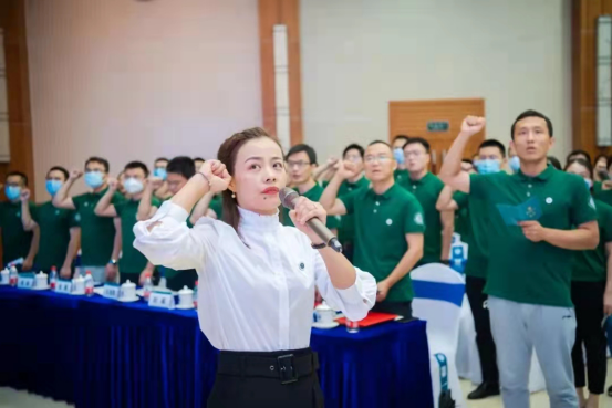(新入职教师宣誓,佘能芳老师领誓)