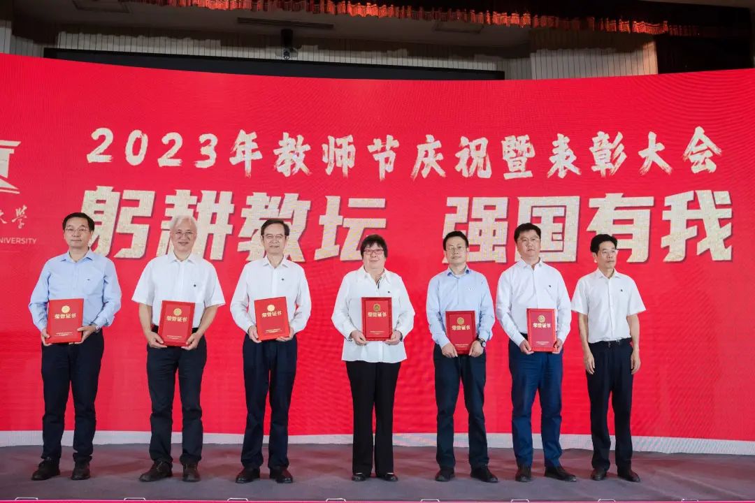 华大在线讯(记者 郝日虹)9月13日,学校2023年教师节庆祝暨表彰大会在科学会堂一楼报告厅举行。全体在校校领导,重要奖励、人才项目获得者(入选者),从教三十年、四十年、荣休教职员工代表,新入职教师代表,各单位主要负责人参会。各单位设置分会场,组织师生线上观看大会。大会由副校长任友洲主持。