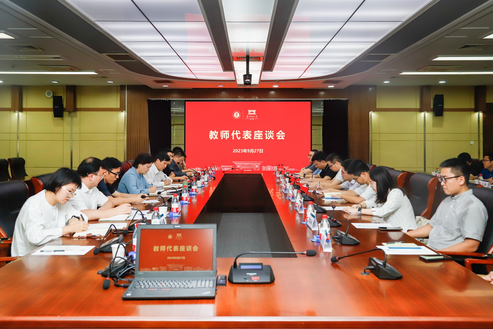 华大在线讯(记者 华轩9月27日,教师代表座谈会在逸夫国际会议中心二楼举行。校长郝芳华、副校长任友洲与来自人工智能教育学部、教育学院、心理学院、文学院等16个学院的教师代表座谈交流,倾听教师心声,听取大家对学校发展建设的意见和建议。学校办公室、党委组织部、财务处、本科生院、研究生院、科技处、社科处、实验室与设备管理处、人事部等职能部门负责人参加座谈。座谈会由任友洲主持。