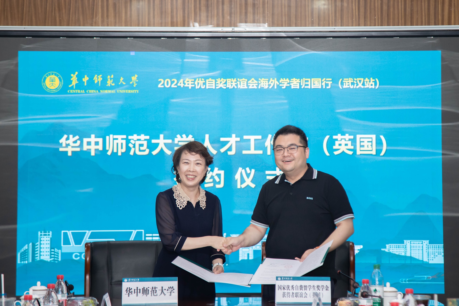 活动期间,我校与国家优秀自费留学奖学金获得者联谊会(英国)签订了建立华中师范大学人才工作站(英国)的合作协议。人才工作站将为我校与海外优秀人才提供一个更紧密、便捷的沟通交流平台,为学校人才引进工作搭建桥梁。