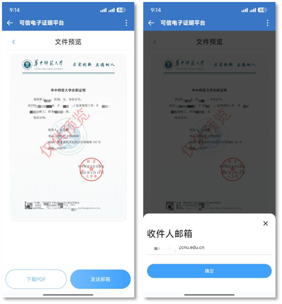 或“发送邮箱”将电子证明文件