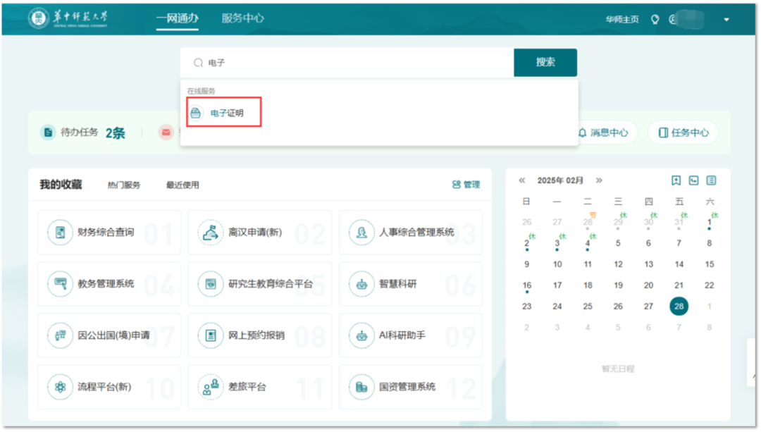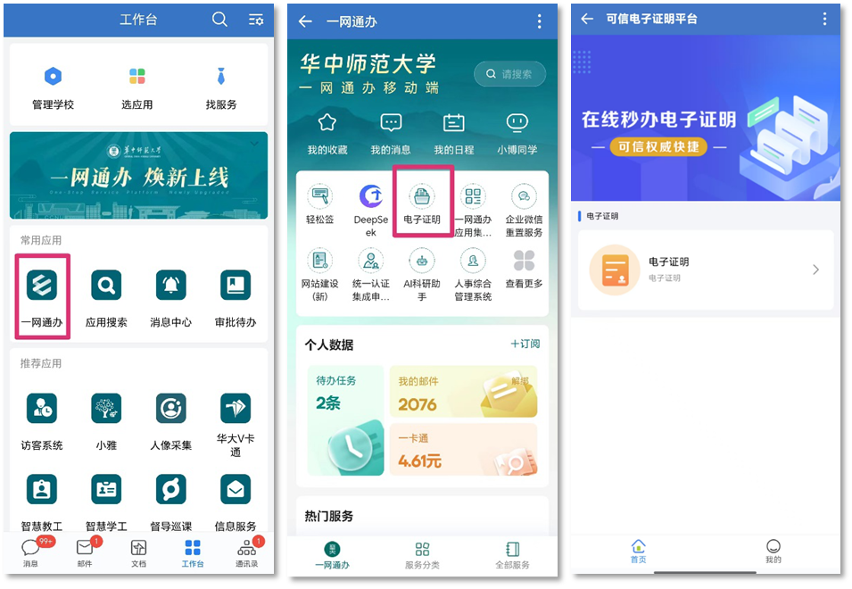 从学校一网通办进入电子证明