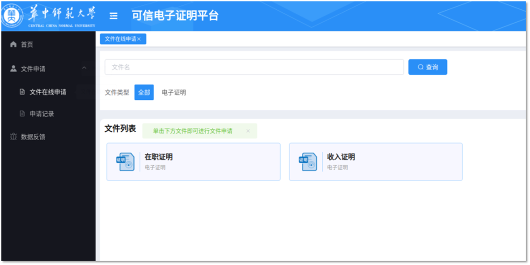 进入系统后,选择电子证明模块
