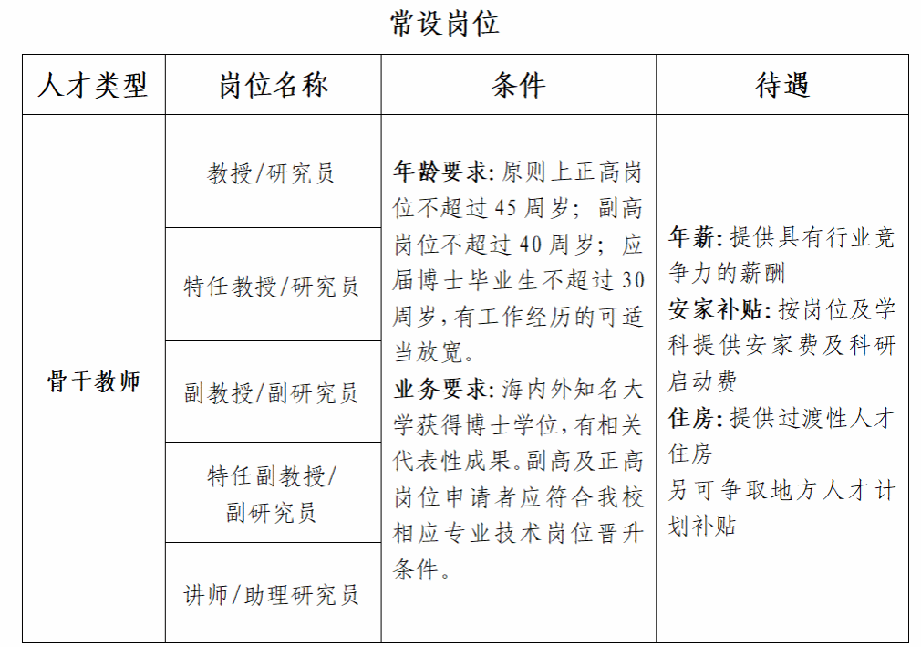 2. 原则上正高岗位不超过45周岁;副高岗位不超过40周岁;应届博士毕业生不超过30周岁,有工作经历的可适当放宽;