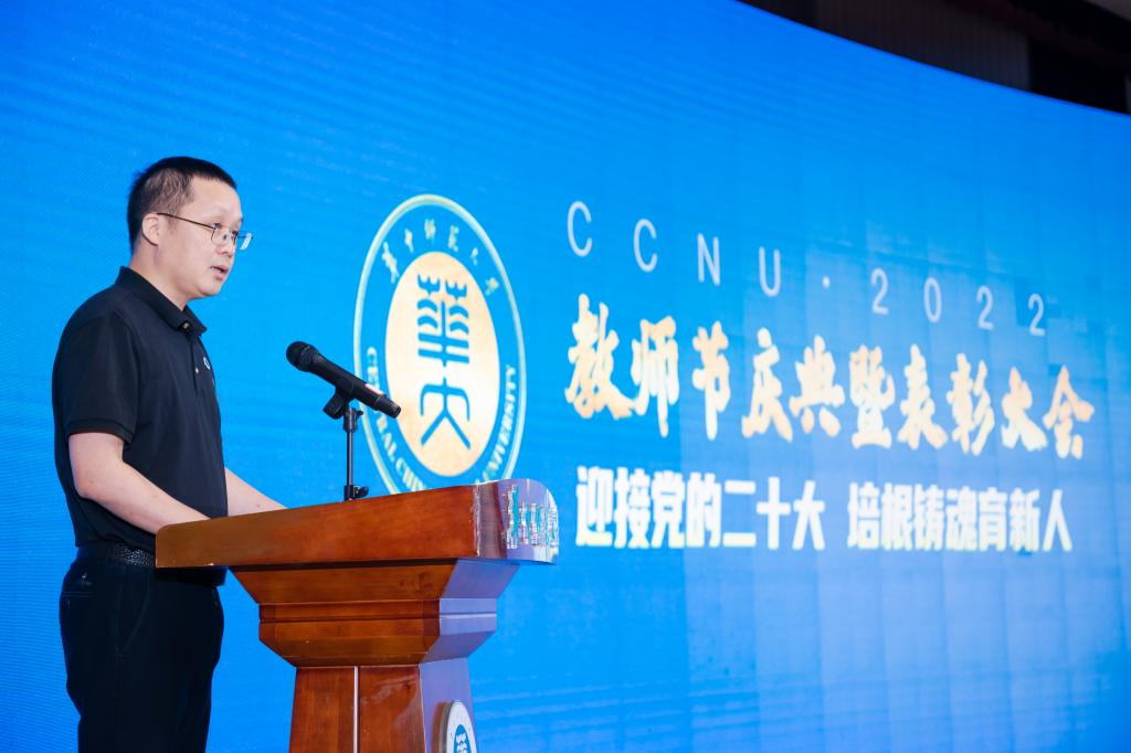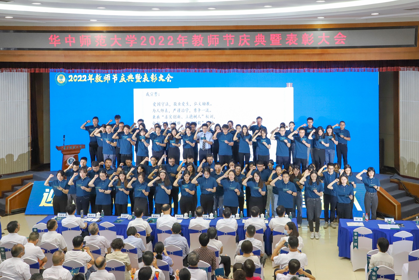 大会表彰了76名从教30年的教职员工、34名从教40年的教职员工、120名荣休教职员工,新入职教职员工代表上台为荣休教职员工献花,荣休教职员工为新入职教职员工代表赠送校徽。大会还表彰了2021年度“校长奖”获得者、楚天园丁奖获奖者、湖北省五一劳动奖章获奖者、荆楚好老师获奖者、第二届全国高校教师教学创新大赛获奖者、湖北省第八届青年教师教学竞赛获奖者、第六届全国教育科学研究成果获奖者、霍英东青年科学奖获奖者。