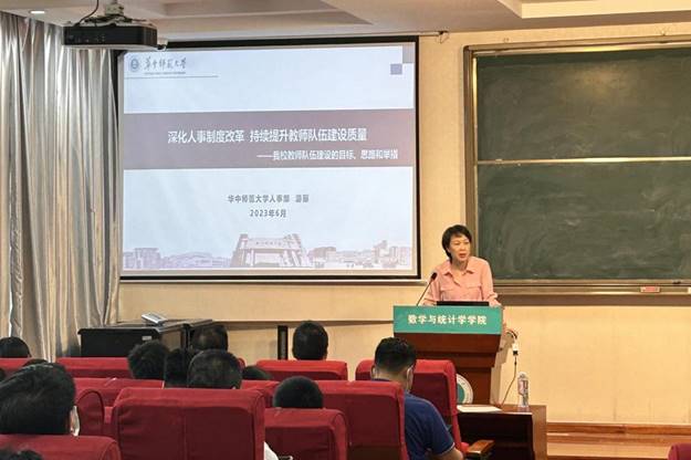人事部部长游丽以《深化人事制度改革 持续提升教师队伍建设质量》为题为全体党员上了一次人事人才专题党课。她从习近平总书记关于教育的重要论述、中共中央、国务院关于教师队伍的决策部署和党中央人才工作新要求等三个方面重点阐述了新时代高校教师队伍建设的新要求,重点围绕教师思政、师德师风、人才引育、教育评价、人事人才综合改革等中心工作提出了我校在教师队伍建设目标、思路及举措。