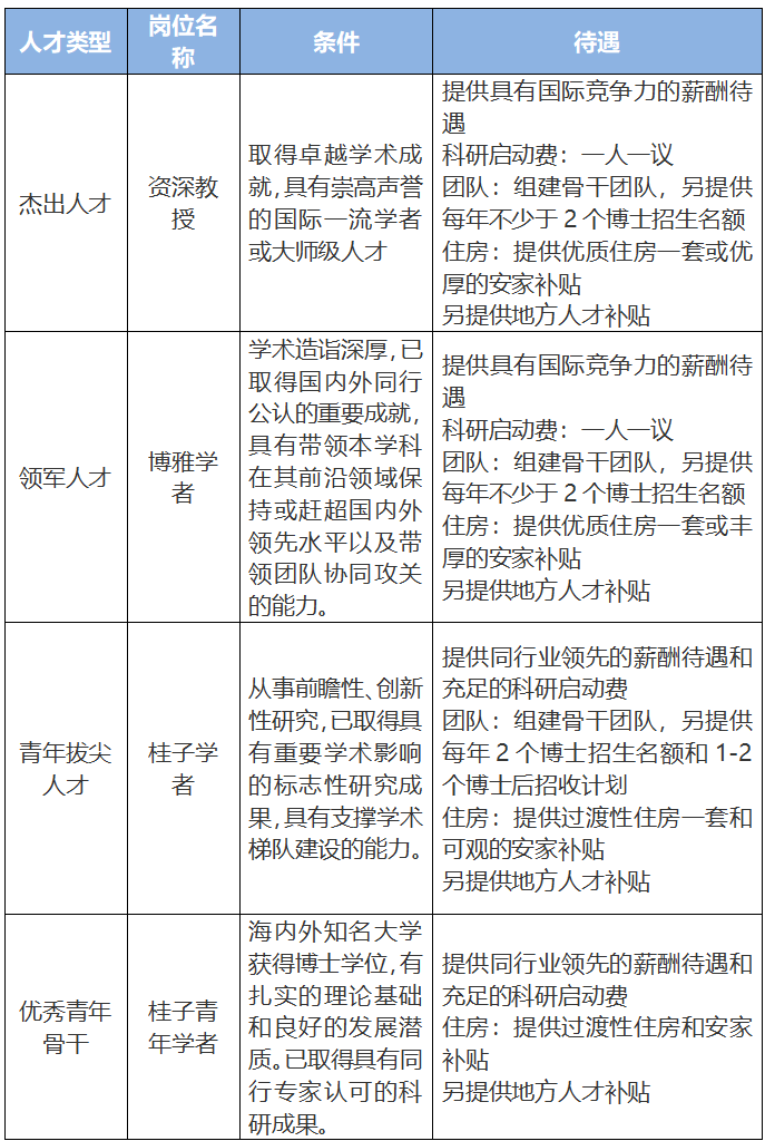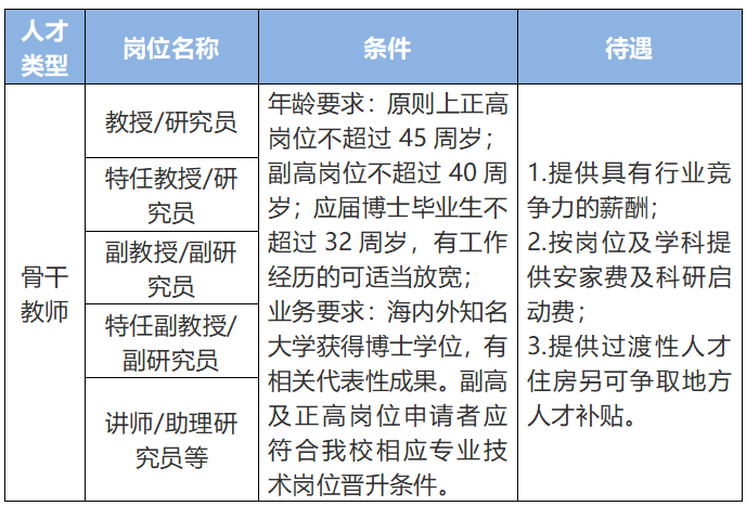 提供具有国际竞争力的薪酬,另可叠加成果奖励、科研绩效分配、成果转化收益等。重点领域、急需紧缺或特别优秀人才可“一事一议”,叠加学校才志基金特别支持。