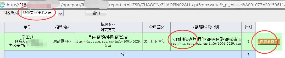3.心理健康教育中心教师岗位招聘工作具体方案将于2018年3月下旬在学校网站(http://xgb.ccnu.edu.cn)的“通知公告”栏上公布。